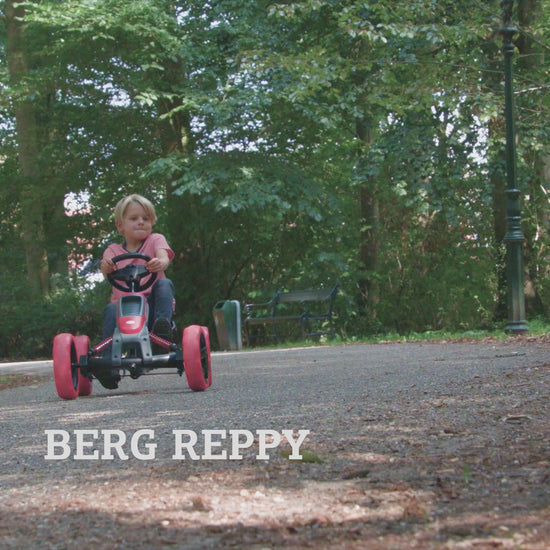 BERG Reppy er en sporty og super sjov gokart til små børn, der elsker fart, leg og opmærksomhed. Med sit karakteristiske sportsrat, det seje skålformede sæde og en stabil svingaksel får barnet en ægte gokartoplevelse – perfekt til aktiv leg udendørs.
