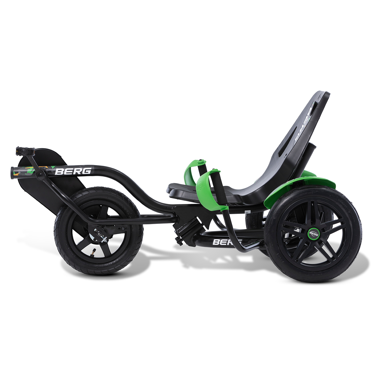 BERG Street-X trehjulet cykel er udstyret med det unikke BFR-system (Brake, Freewheel, Reverse), som gør den ekstra sjov og let at køre. Med BFR kan barnet køre fremad, bremse med pedalerne og bakke med det samme – helt uden at skifte gear.