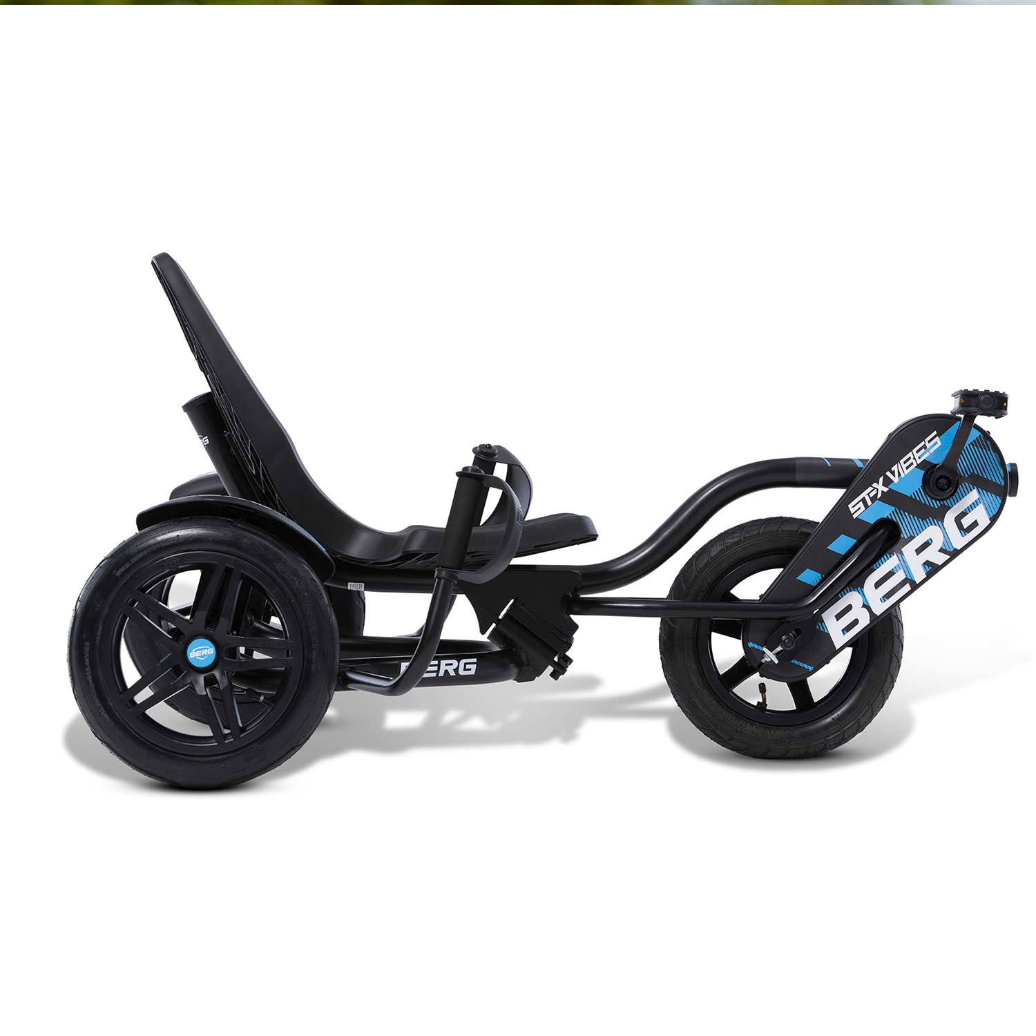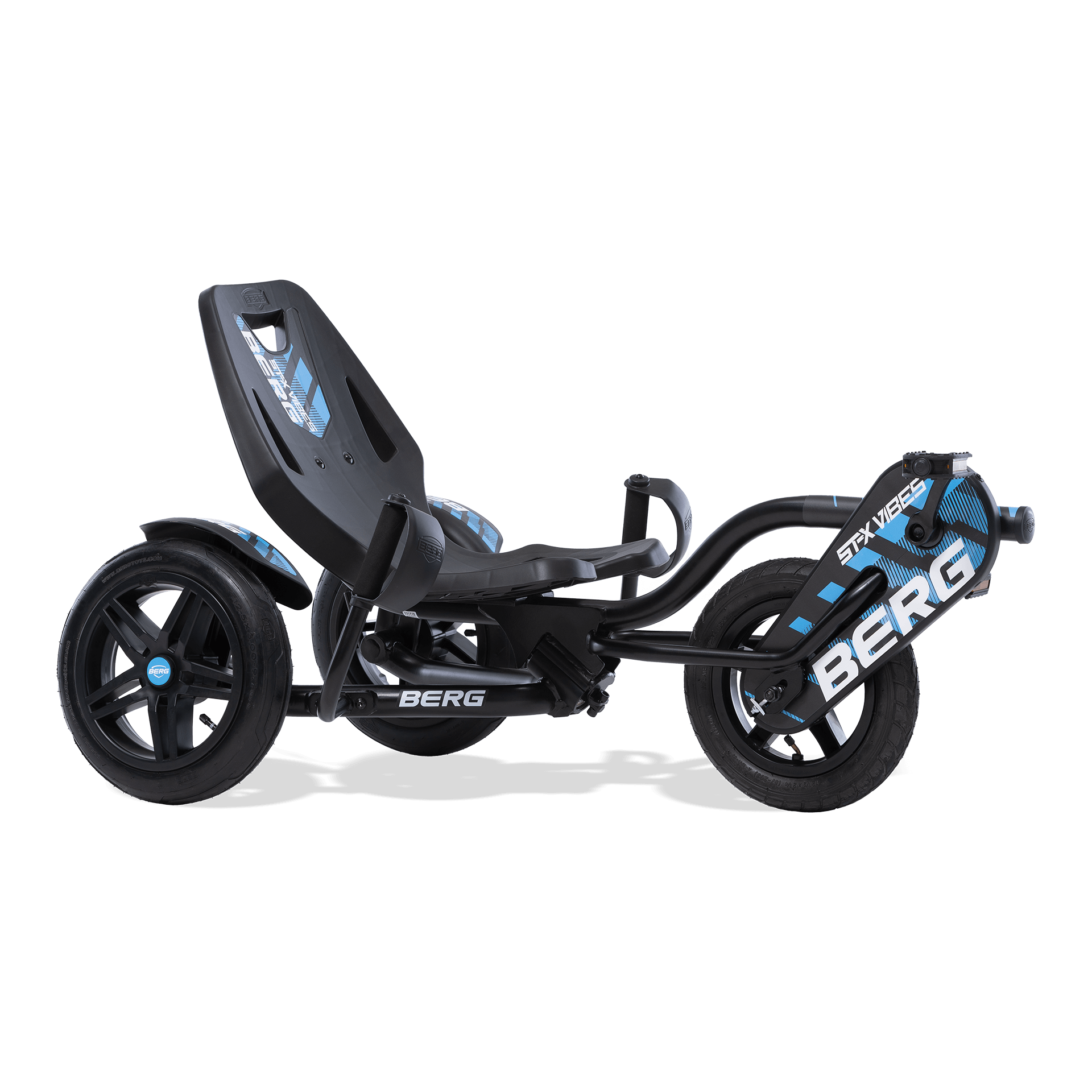 BERG Street-X trehjulet cykel er udstyret med det unikke BFR-system (Brake, Freewheel, Reverse), som gør den ekstra sjov og let at køre. Med BFR kan barnet køre fremad, bremse med pedalerne og bakke med det samme – helt uden at skifte gear.
