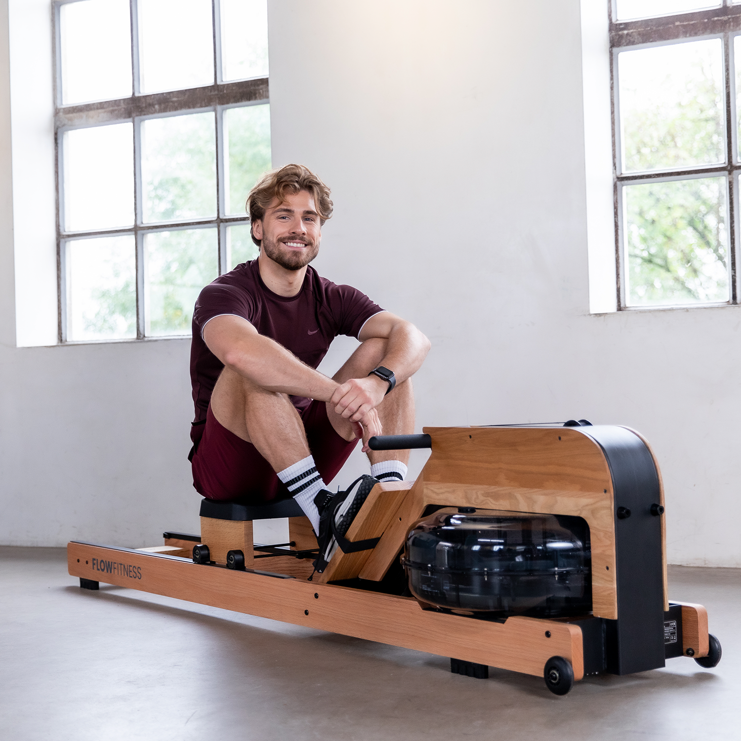 Flow Fitness Perform W9i Vandromaskine i Egetræ – Realistisk roning i eksklusivt design