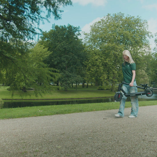 Det solide aluminiumsstel kan bære op til 120 kg og er samtidig let og slidstærkt. Med en vægt på ca. 14,5 kg er el-løbehjulet nemt at tage med i bil eller offentlig transport.