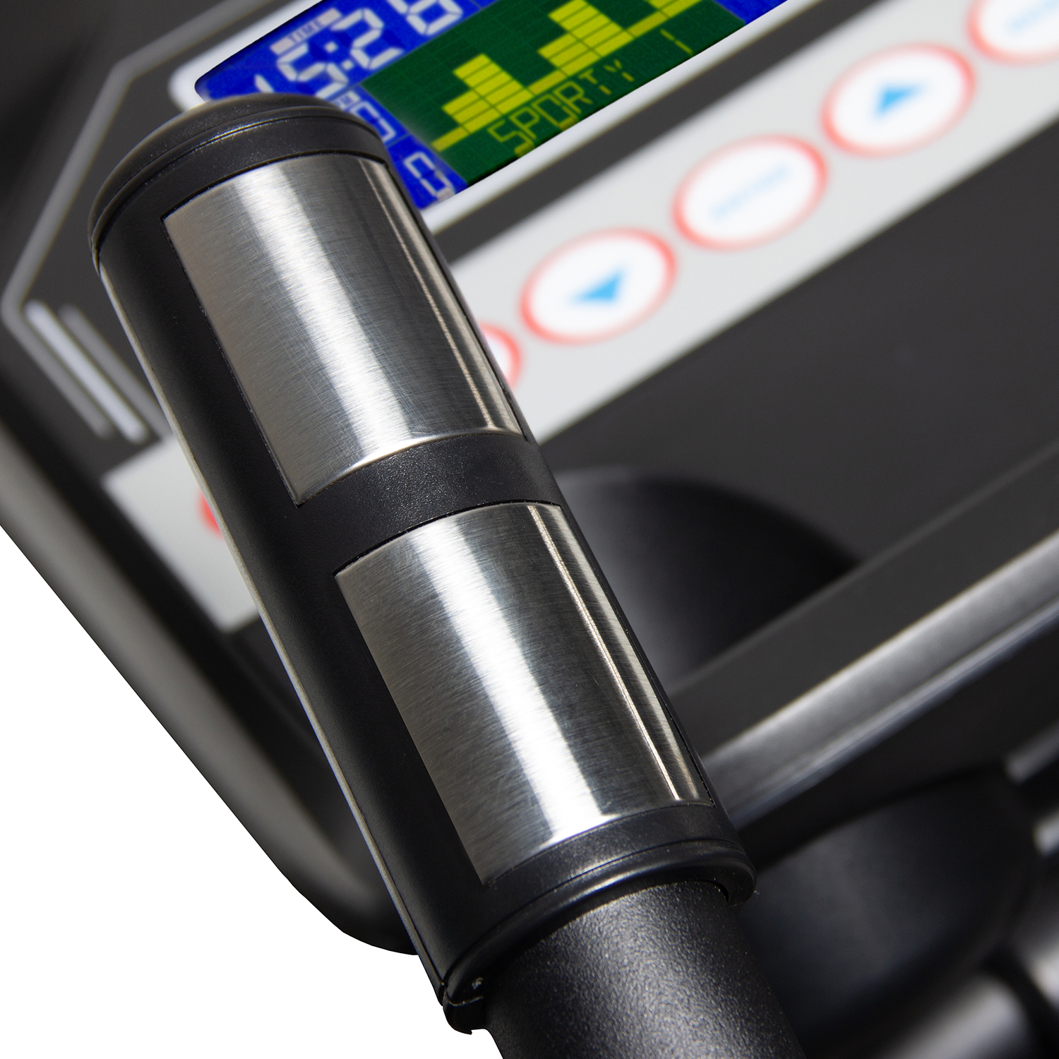 Pulsen kan måles via håndpulssensorerne eller med trådløst pulsbælte (tilkøb), hvilket er nødvendigt for pulsstyrede programmer og app-integration.