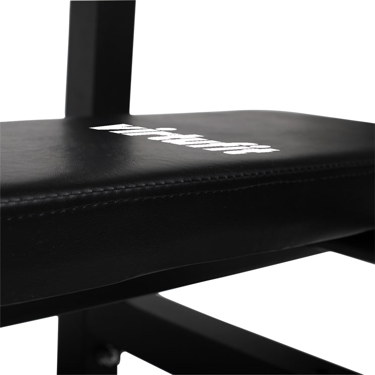 Vægtbænken er udstyret med justerbare vægtstangsholdere, så du kan indstille højden præcist til en behagelig og sikker bænkpresposition. Under begge holdere er der integrerede sikkerhedsaflæg, som gør det muligt at lægge vægtstangen sikkert fra dig, hvis du ikke kan gennemføre en gentagelse.