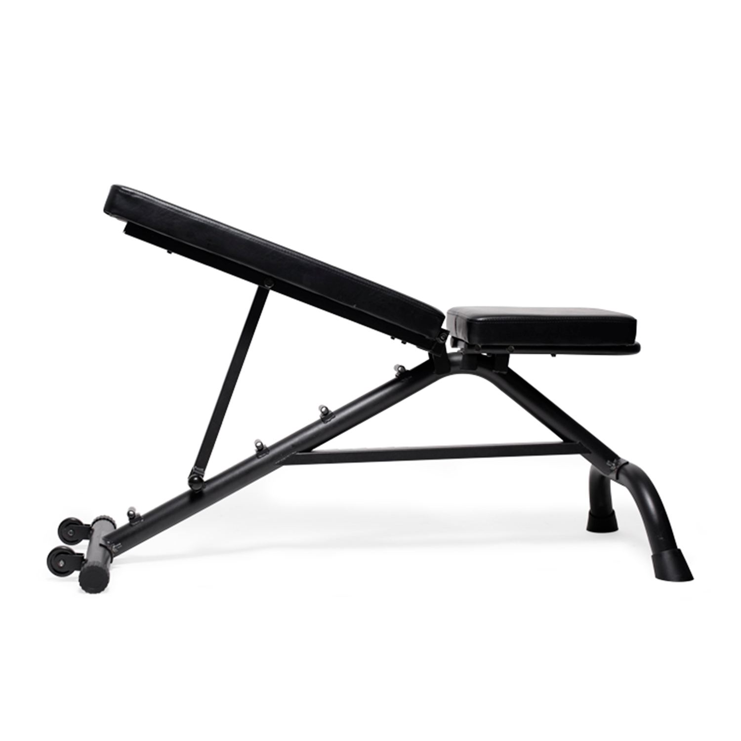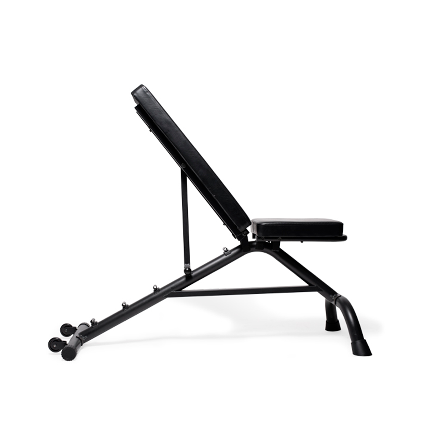 Læg bænken helt fladt for at udføre bænkpres med vægtstang eller dumbbell flyes med håndvægte. Bænken giver dig fleksibiliteten til både styrkeopbygning og muskeltræning.