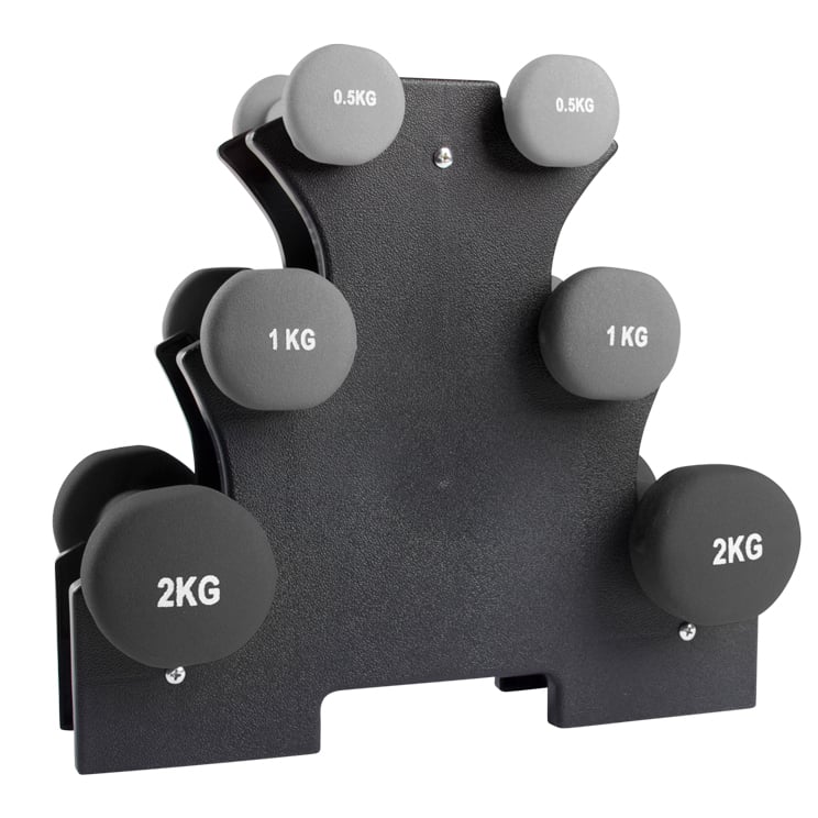 VirtuFit Neopren Håndvægtsæt er et perfekt valg til dig, der ønsker en nem og effektiv måde at komme i gang med let styrke- og konditionstræning i hjemmet. Sættet består af tre par håndvægte på 0,5 kg, 1 kg og 2 kg og leveres med en stilren sort holder i kunststof, som gør opbevaringen både praktisk og pladsbesparende.